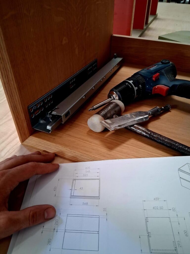 La encimera de roble aporta calidez y carácter, contrastando con la elegancia serena de las superficies lacadas. El relieve de diamantes pequeños añade un juego sutil de luces y sombras, dando vida al minimalismo. Una colección pensada para espacios que buscan equilibrio entre lo natural y lo sofisticado, donde cada detalle habla de diseño y sensibilidad.
